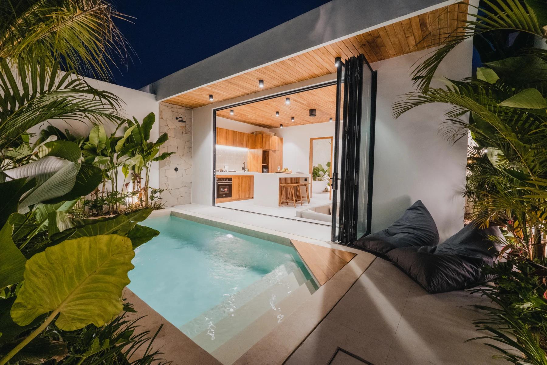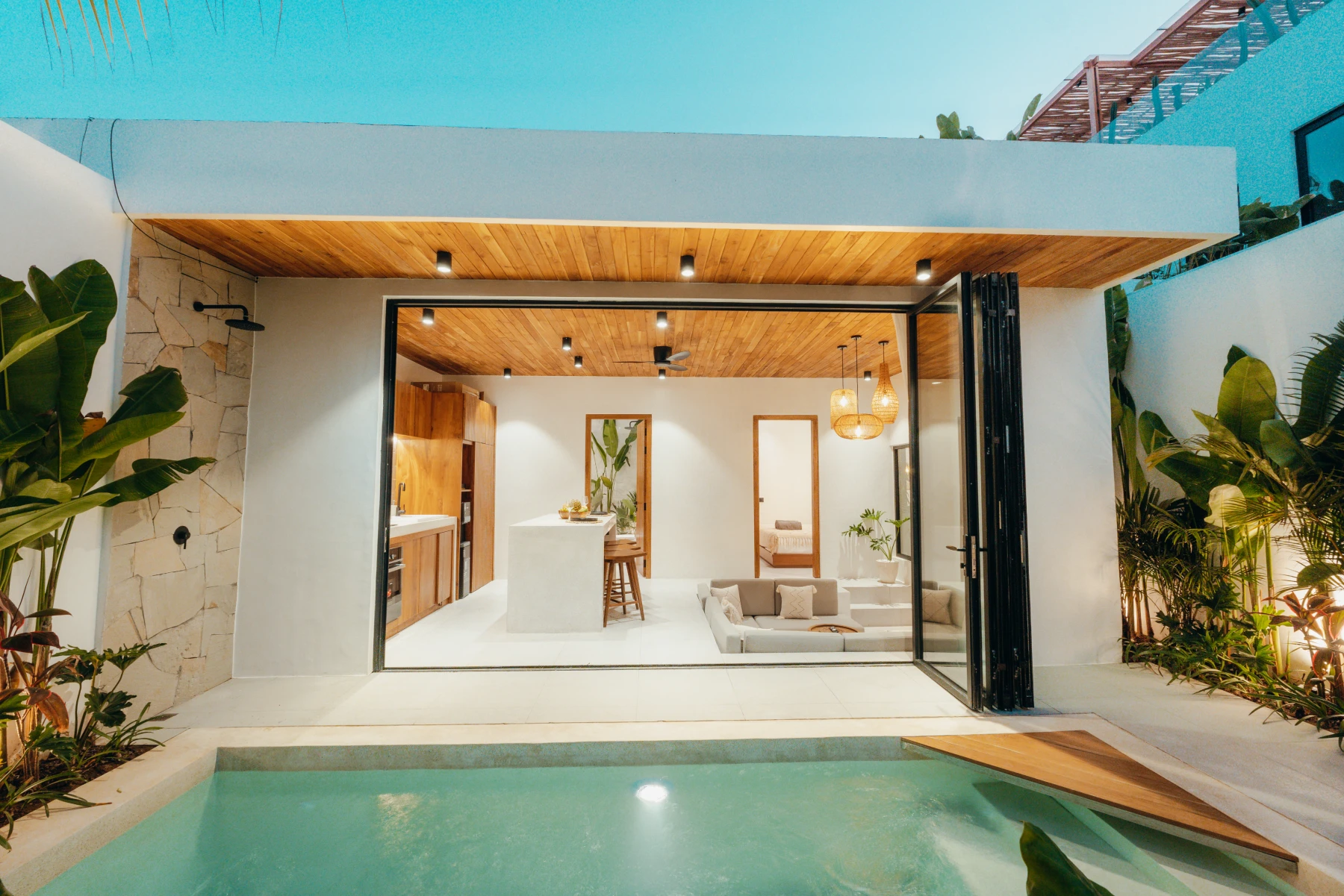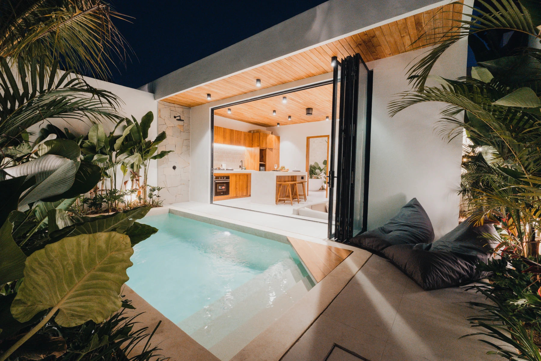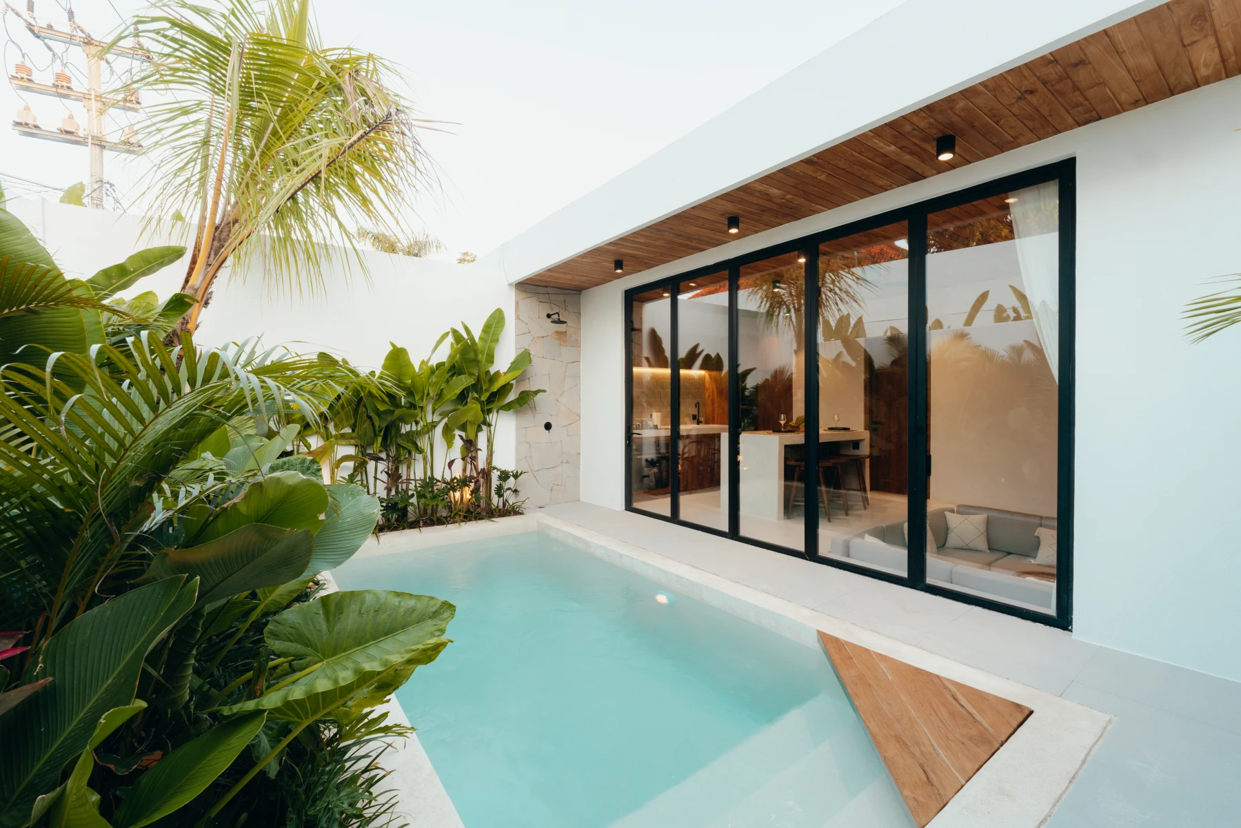Perfect for up to two people, it offers modern and functional living. Situated in Umalas, it is just five minutes from beaches, cafes, beach clubs, and nightlife.
