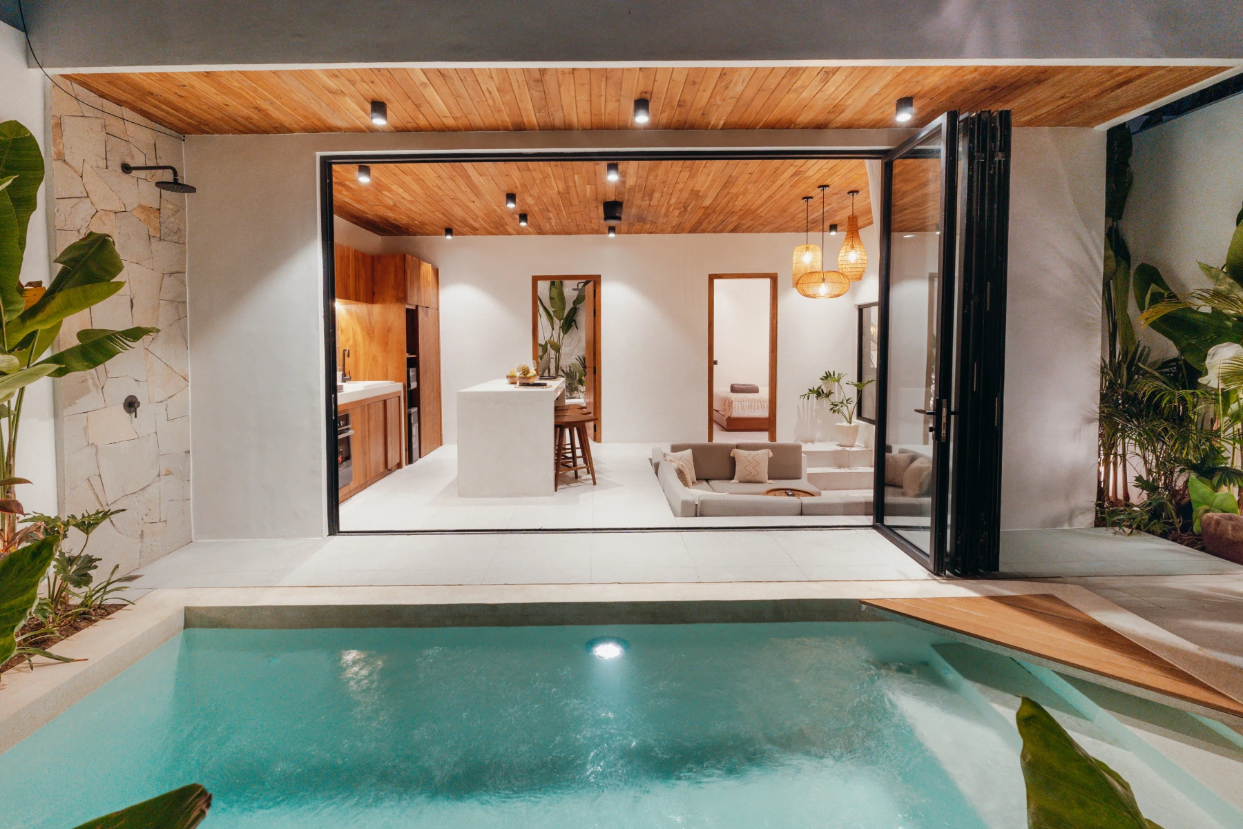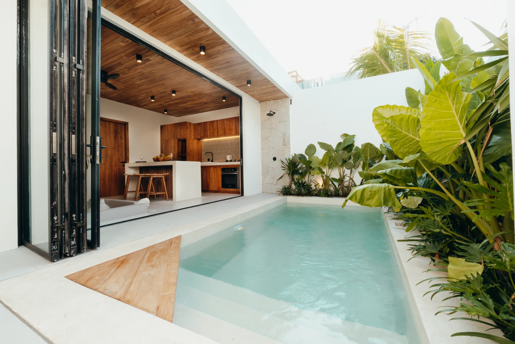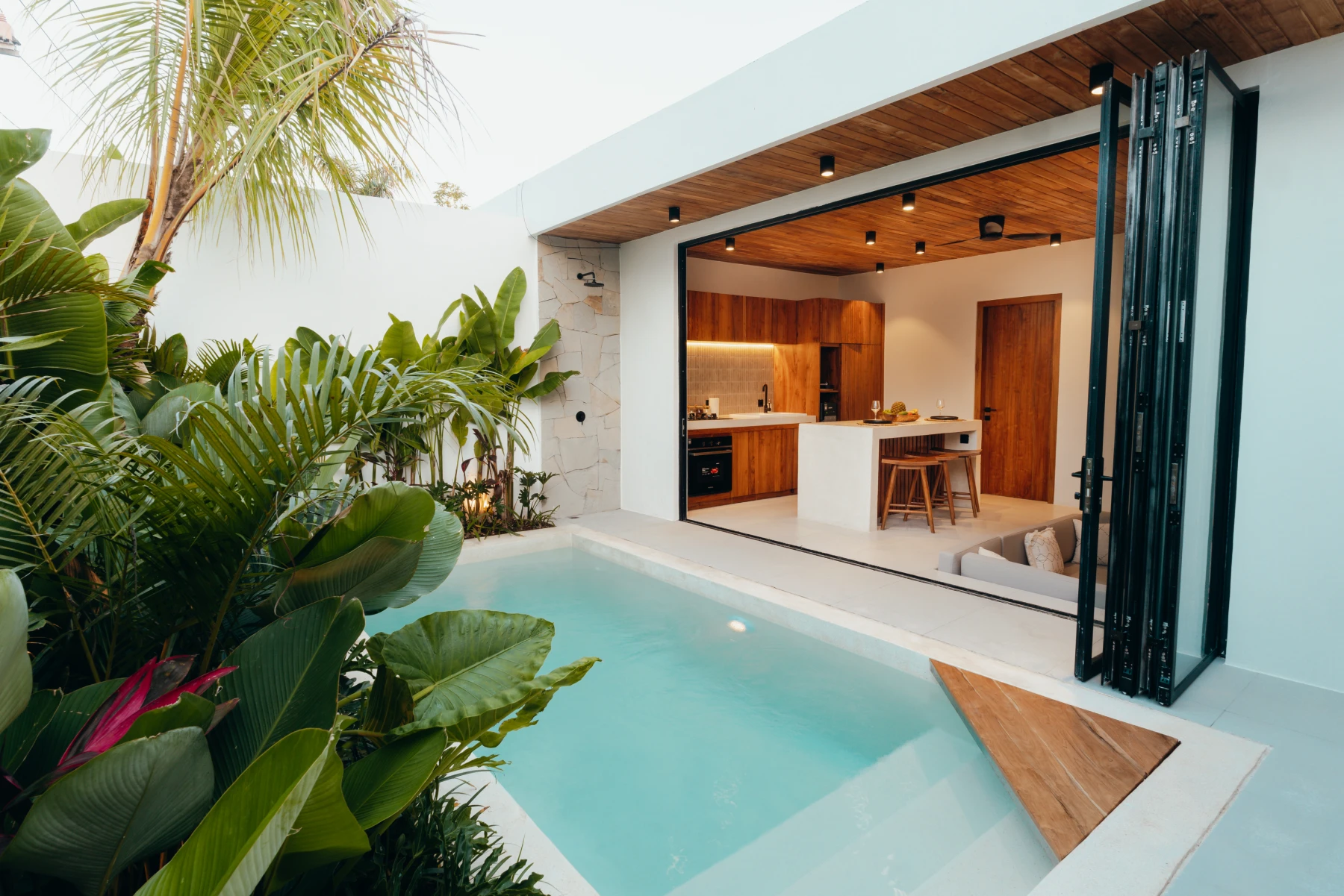 Perfect for up to two people, it offers modern and functional living. Situated in Umalas, it is just five minutes from beaches, cafes, beach clubs, and nightlife.