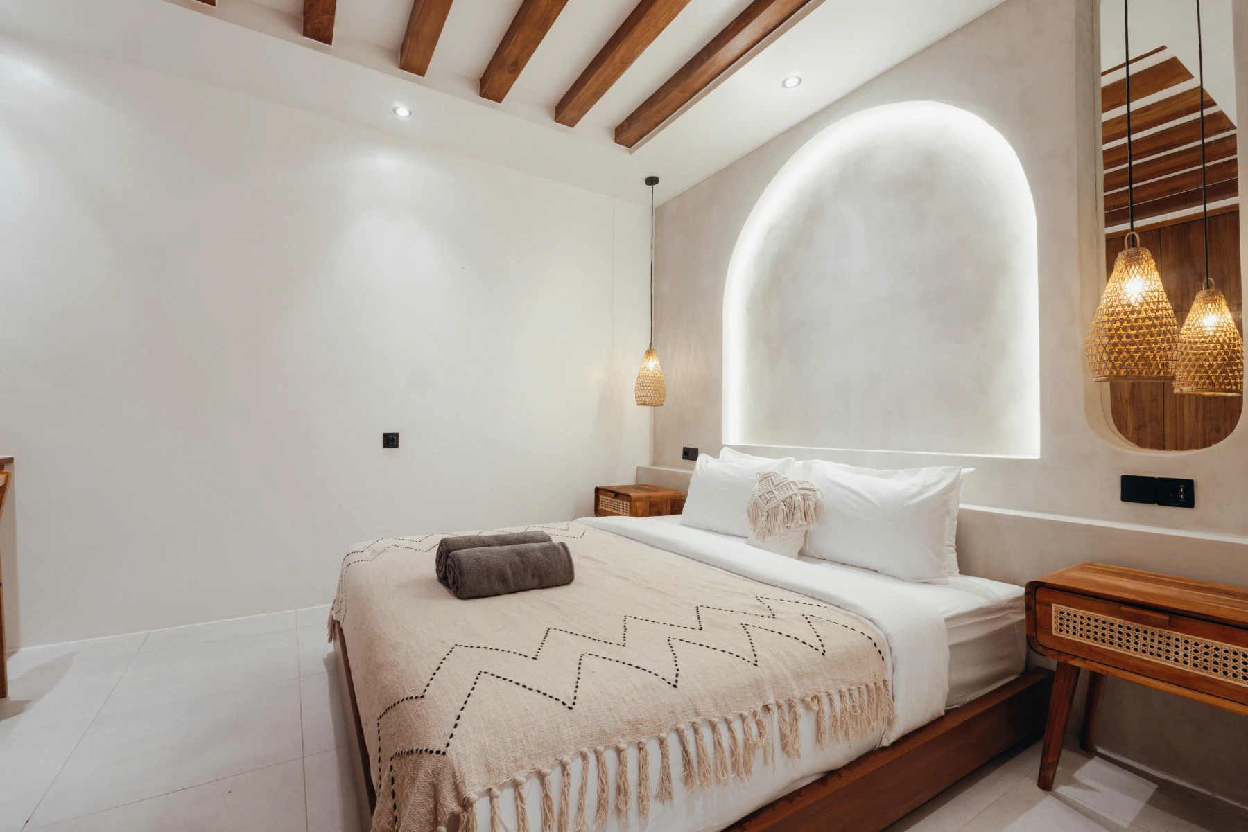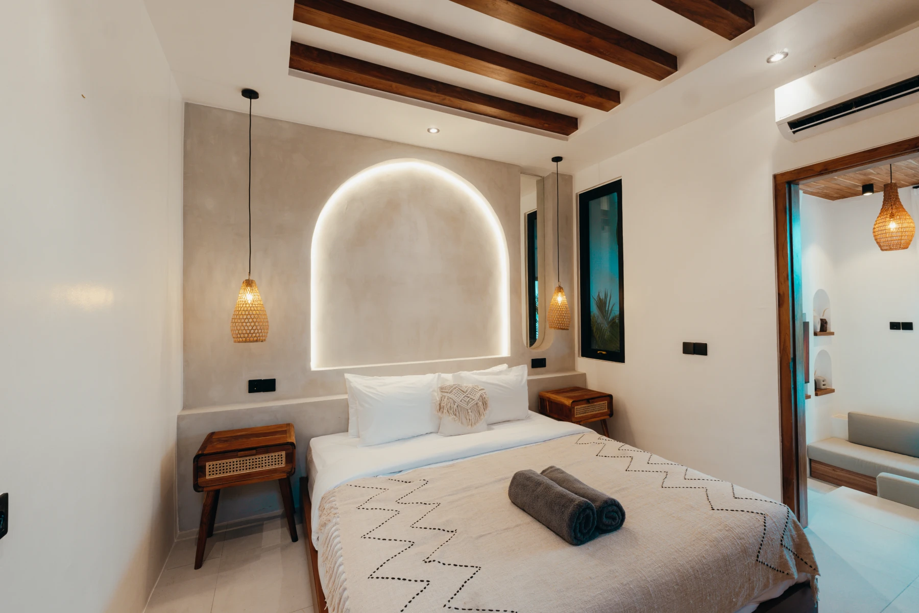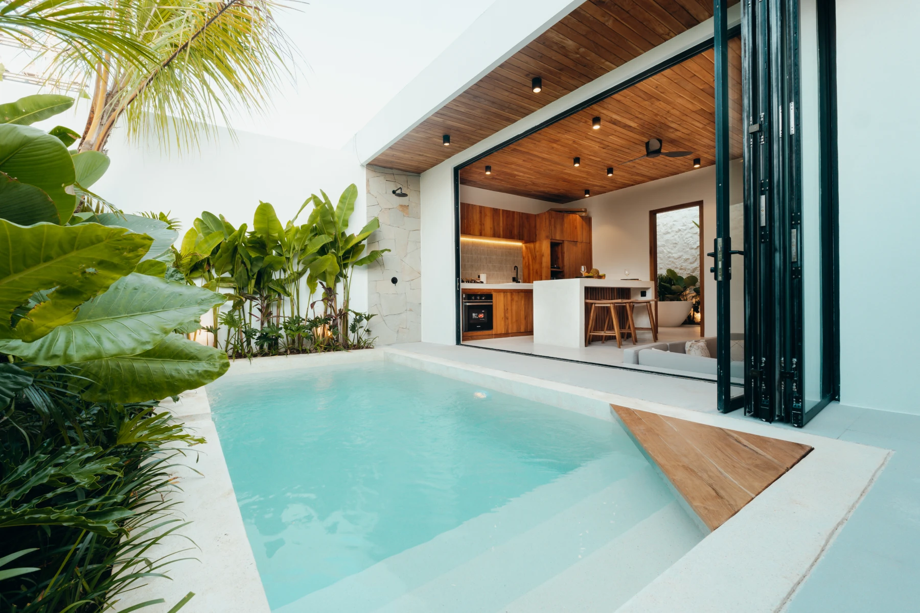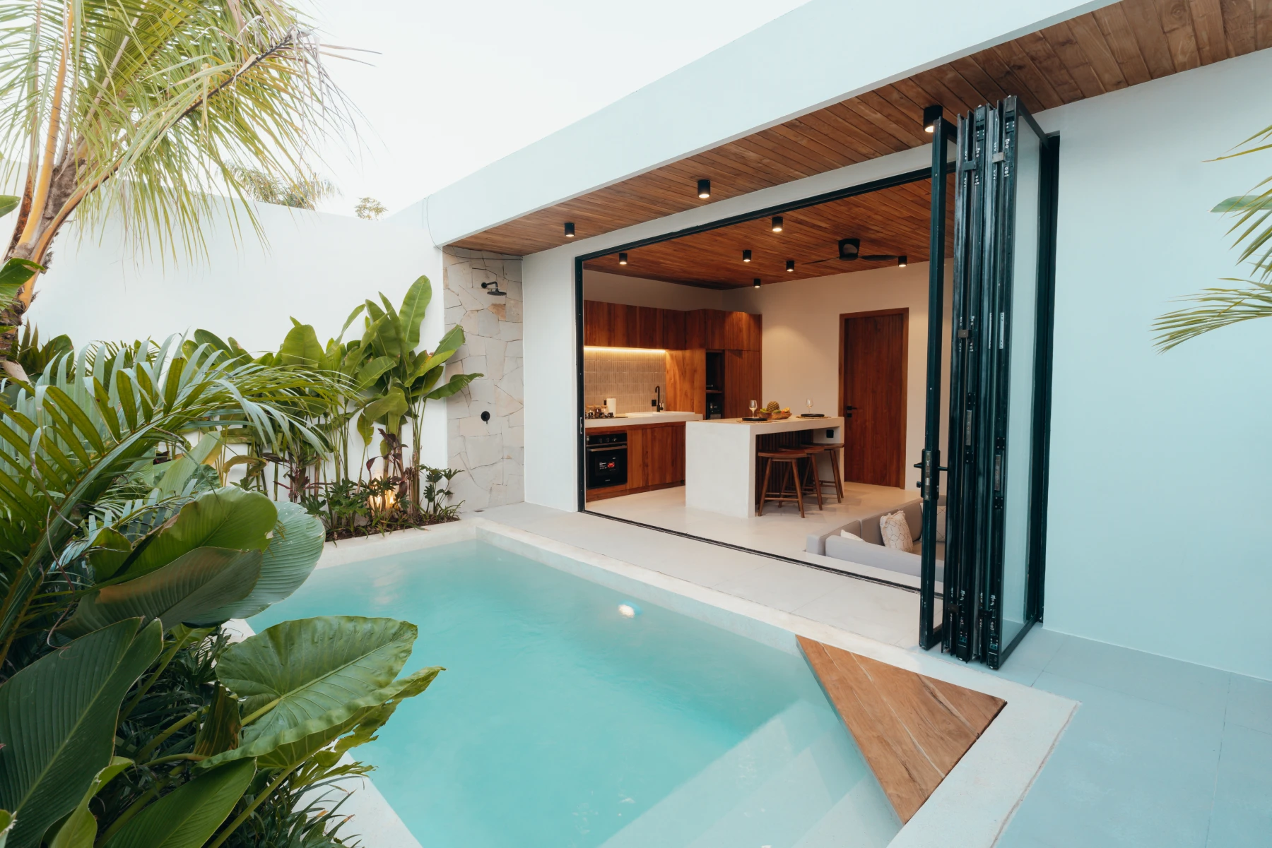 Perfect for up to two people, it offers modern and functional living. Situated in Umalas, it is just five minutes from beaches, cafes, beach clubs, and nightlife.