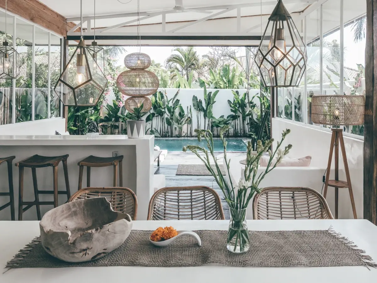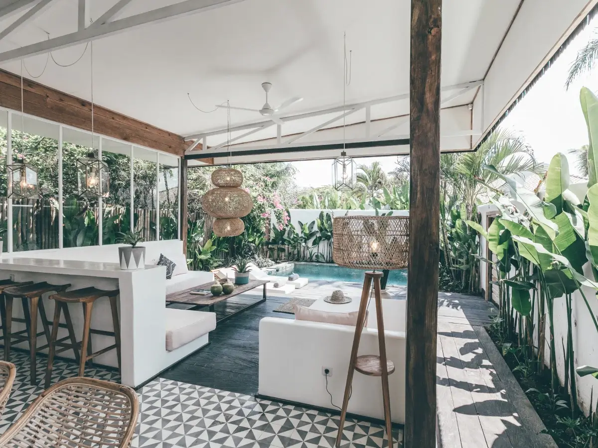 The villa has a private pool, kitchen,
